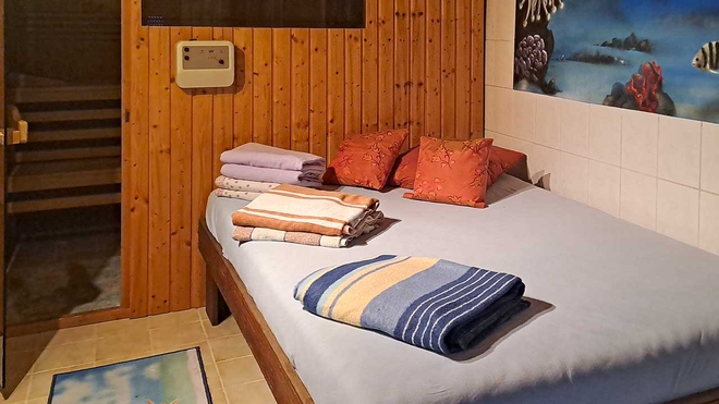 Entspannung bieten Ihnen die Sauna und natürlich haben wir die Ruheoase „Traumbaum“ nicht nur für Kinder gebaut.